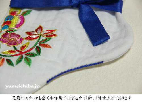 全てハンドメイドで手刺繍やキルティングも一針、一針丁寧に心を込めて施された おめでたい日におすすめの素敵な足袋です。