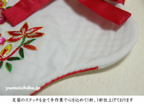 全てハンドメイドで手刺繍やキルティングも一針、一針丁寧に心を込めて施された おめでたい日におすすめの素敵な足袋です。